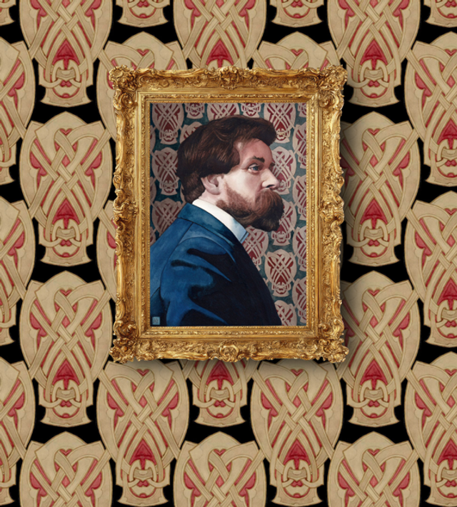 Lisa’s style brings warmth and presence to a figure usually known only through old photographs. Behind him sits a subtle but meaningful detail: the wallpaper pattern is one of Knox’s own designs, creating a visual echo between artist and subject. With very few painted portraits of Knox in existence, this piece becomes a rare and thoughtful tribute to one of the island’s most influential creative minds. A perfect choice for admirers of Manx heritage, design history and contemporary art rooted in the island’s cultural legacy.
